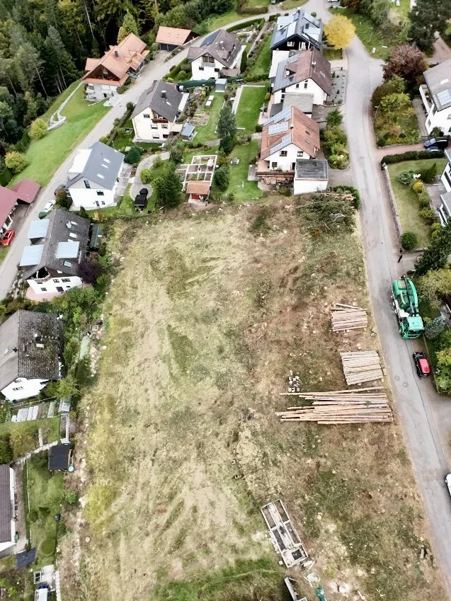 Wo früher Wald war, entsteht jetzt Raum für neues Leben: Die rund 3000 Quadratmeter große Hangfläche in Tennenbronn wurde im Rahmen einer Grundstücksentwicklung neu gestaltet. Das zuvor bewaldete Areal wurde gerodet, erschlossen und in zwei Bauplätze aufgeteilt, auf denen künftig zwei Ein- oder Zweifamilienhäuser entstehen können. Highlight ist der und unverbaubare Blick über den Schwarzwald.